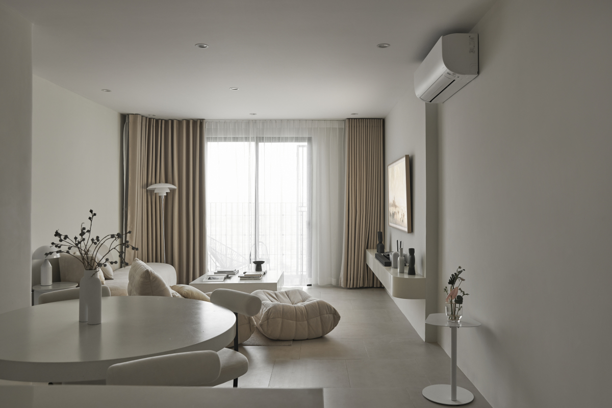 Căn hộ 80 m2 với tông màu trắng kem ở quận 10 (TP HCM) là tổ ấm của Phương Nguyễn, chàng trai sinh năm 1988 làm trong lĩnh vực nghệ thuật. Khi được gia chủ mua vào tháng 8/2020, căn hộ có ưu điểm là nhiều ánh sáng, thoáng nhưng bố trí mặt bằng chưa phù hợp với nhu cầu nên anh quyết định cải tạo toàn bộ.