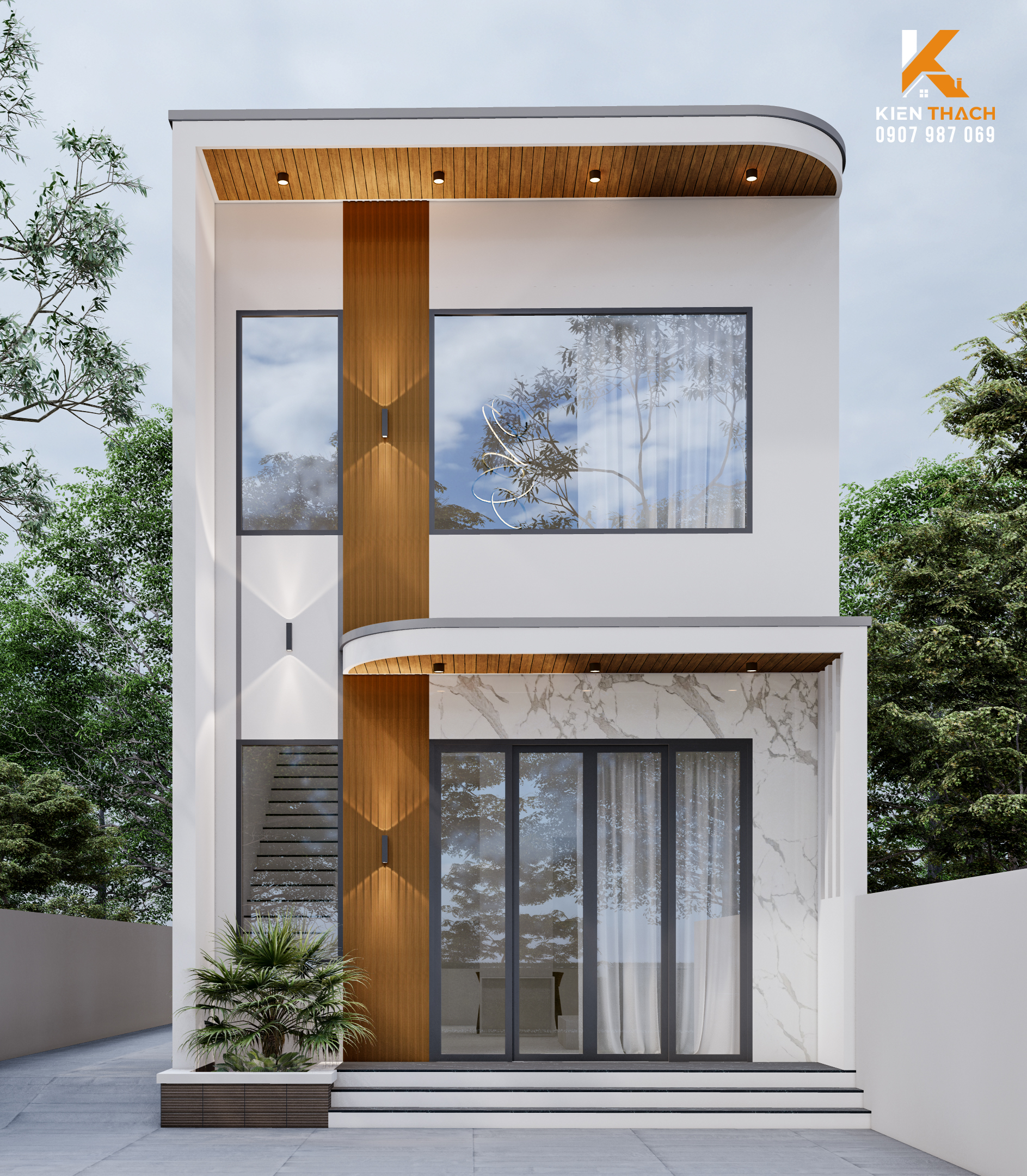 Mẫu thiết kế nhà phố đẹp 1 trệt 1 lửng 5×20m 3 phòng ngủ 1 phòng thờ Bản vẽ thiết kế nhà ống 1 trệt 1 lửng 5x20m sau của gia đình anh Thảo chị Thy có 3 phòng ngủ 1 phòng thờ xây dựng với chi phí khoảng 1 tỷ đến 1,2 tỷ hoàn thiện. Mẫu thiết kế nhà phố 5×20m không có gì phức tạp lắm. Chi phí đầu tư vừa phải đơn giản tiết kiệm nhất. Thiết kế tone màu trắng nhẹ nhàng xử lý 3 lớp chống thấm chắc chắn. Đây là kiểu nhà 1 trệt 1 lửng hiện đại tối giản. Mặt tiền nhấn nhá nhẹ nhàng như ốp gỗ ; Sử dụng cửa nhôm kính cường lực tạo cho kiến trúc hài hòa nhiều ánh sáng. Tất cả hệ thống cửa sổ mẫu thiết kế nhà phố 1 trệt 1 lửng 5x20m đều sử dụng cửa mở 2 cánh ra ngoài. Ở mỗi phòng đều có cửa sổ đưa về 1 bên đồng bộ.
