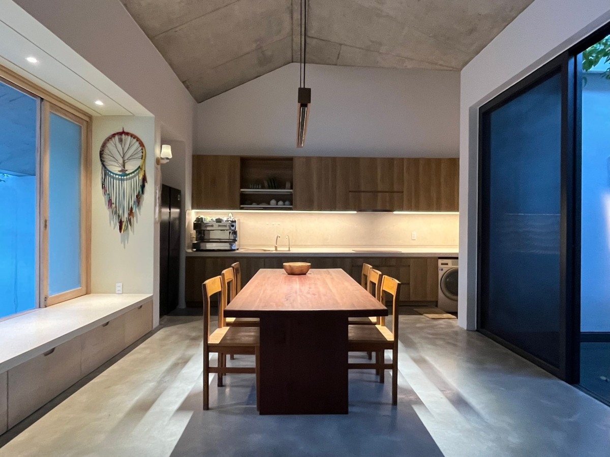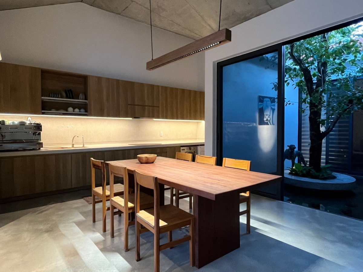 Bếp - phòng ăn được coi như không gian đa năng, đáp ứng các nhu cầu ăn uống, chuyện trò, đọc sách, nhâm nhi tách trà.